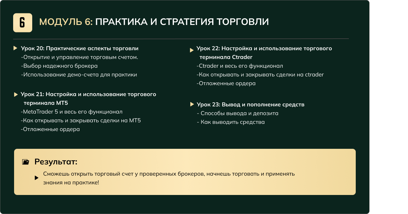 Модуль 6: Практика и стратегия торговли