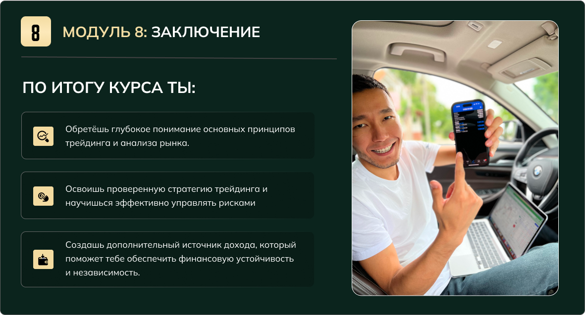 Научишься мыслить и действовать как профессиональные трейдеры и контролировать свои эмоции.